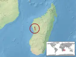 Cette espèce est endémique de la région de Melaky à Madagascar[1]. Elle se rencontre dans le Parc national du Tsingy de Bemaraha.