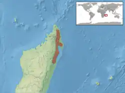 Cette espèce est endémique de Madagascar[1]. Elle se rencontre dans le nord-est de l'île dans les zones proches des côtes, et sur quelques petites îles proches.