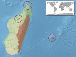 Cette espèce est endémique de Madagascar[1]. Elle se rencontre au centre, à l'est et au nord-ouest selon les sous-espèces.