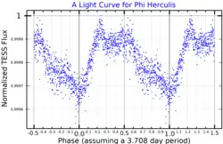 Phi Herculis (en abrégé φ Her) est une étoile binaire[4] de la constellation boréale d'Hercule. Elle est visible à l'œil nu avec une magnitude apparente combinée de 4,24[2]. Le système présente une parallaxe annuelle de 15,99 mas mesurée par le satellite Hipparcos[1], ce qui le situe à environ ∼ 204 a.l. (∼ 62,5 pc) de la Terre. Il se rapproche du Système solaire à une vitesse radiale de −16 km/s[6].