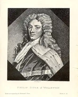 Philip Wharton (Comté d'Oxford, Angleterre, – Monastère de Poblet, Catalogne, ), 1er duc de Wharton, est un important homme politique jacobite, un libertin célèbre et l'un des premiers grands maîtres de la franc-maçonnerie.