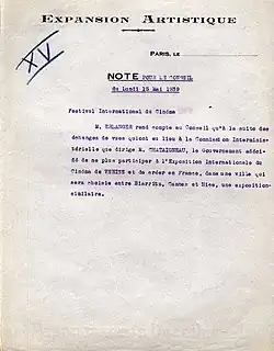C'est lui qui a l'idée du Festival de Cannes en 1939, en réaction au discrédit dont s'est couverte la Mostra de Venise qui a récompensé, en 1938, le documentaire de Leni Riefenstahl Les Dieux du Stade, sous influence du nazisme, ex æquo avec un film supervisé par le fils de Mussolini. Présent à Venise, il peut annoncer le lancement d'une initiative concurrente, avec l'aval de son ministre de tutelle, Jean Zay, ministre de l'Instruction publique et des Beaux-Arts. La ville de Cannes est choisie pour son agrément et son ensoleillement. Premier délégué général du festival (1946-1951), Philippe Erlanger est également membre du jury en 1953 et 1954. En 1956 il fait retirer Nuit et Brouillard d'Alain Resnais de la sélection du festival de Cannes pour ne pas froisser l'Allemagne fédérale. Il demeure président d'honneur du Festival de Cannes jusqu'à sa mort en 1987.