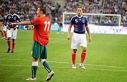 Le , il marque son premier but international en reprenant de la tête un coup franc de Samir Nasri lors du match qualificatif pour l'Euro 2012 face au Luxembourg (victoire 2-0)[47].