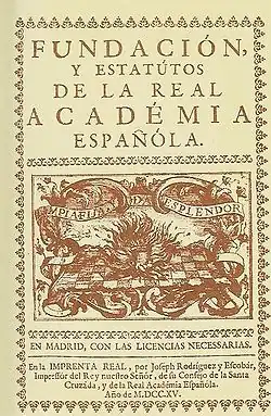 - ↑ L'Académie royale espagnole est clairement fondée sur le modèle de l'Académie française.