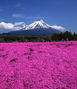 Le Fuji Shibazakura Festival, est un événement créé en 2008 qui se déroule à la station Fuji Motosu, dans la région du lac Motosu, au Japon. Dans un parc de 2,4 hectares, ce sont plus de 800 000 fleurs de Phlox subulata que des milliers de touristes viennent admirer[10],[11],[12]. Le festival commence vers mi-avril et dure un peu plus d’un mois[10]. Six variétés de Phlox subulata sont utilisées pour créer les parterres de fleurs : McDaniel’s Cushion (rose foncé), Mont-Blanc (blanc), Autumn Rose (rose), Tama-no-Nagare (rose pâle), Little Dot (blanc) et Oakington Blue-Eyes (rouge violet)[10],[9].