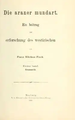 - (de) Franz Finck, Die araner Mundart : ein Beitrag zur Erforschung des Westirischen, Marburg N. G. Elwert, (OCLC 697614909, lire sur Wikisource, lire en ligne).