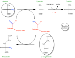 La réaction de l'ALAT (alanine aminotransférase ou Glutamate pyruvate transaminase) est la suivante, montrant le rôle du coenzyme.