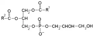 Un phosphatidylglycérol est un phospholipide constitué d'un acide phosphatidique lié par une liaison ester à un résidu glycérol.
