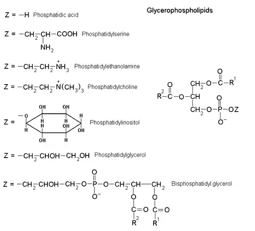 - un autre résidu glycérol, donnant un phosphatidylglycérol ;