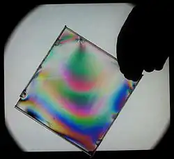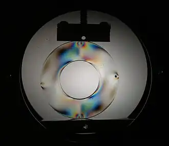 La photoélasticimétrie est une méthode expérimentale permettant de cartographier les contraintes existant à l'intérieur d'un solide grâce à sa photoélasticité[79]. C'est une méthode principalement optique se basant sur la biréfringence acquise par les matériaux soumis à des contraintes[79]. Cette méthode expérimentale «recouvre l’ensemble des techniques