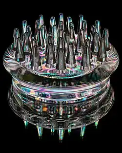 Un polariscope, appareil conçu par Jean-Baptiste Biot, utilisé pour observer l'effet photoélastique sur un matériau traversé par des rayons de lumière polarisée.