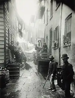 Riis était un journaliste d'investigation new-yorkais qui s'était converti aux idées de réforme sociale en milieu urbain, grâce aux contacts qu'il s'est créé avec divers spécialistes concernés par le problème de la pauvreté, dont certains étaient des photographes amateurs. Riis a tout d'abord utilisé ces relations pour rassembler des photographies, mais a finalement pris lui-même l'appareil photo. Ses livres, notamment How the Other Half Lives (1890) et The Children of the Slums (1892), utilisaient ces photographies, mais très rapidement il commença à utiliser des documents provenant de sources très variées, notamment des clichés anthropométriques de la police et des images photojournalistiques. La photographie documentaire était consacrée au changement des conditions inhumaines dans lesquelles les pauvres vivaient dans les centres urbains et industriels en pleine expansion. Son travail a réussi à intégrer la photographie dans les mouvements de réforme urbaine, notamment l'Évangile Social et des mouvements Progressistes. Son successeur le plus célèbre était le photographe Lewis Wickes Hines, dont les enquêtes sur les conditions de travail des enfants, publiées dans des revues sociologiques comme The Survey, ont eu une influence déterminante sur le développement des lois sur le travail des enfants à New York et aux États-Unis plus généralement.