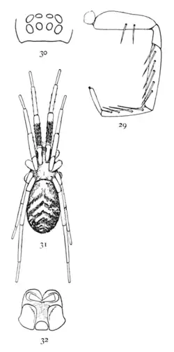 - ↑ World Spider Catalog (WSC). Musée d'histoire naturelle de Berne, en ligne sur http://wsc.nmbe.ch. doi: 10.24436/2, consulté le version 20.5, 14/12/2019.