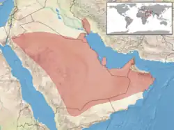Cette espèce se rencontre en Jordanie, en Arabie saoudite, aux Émirats arabes unis, en Oman, et en Iran[1].