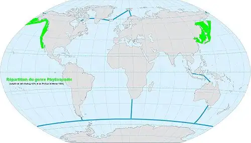 Ce genre est inféodé à l'océan Pacifique depuis le Japon jusqu'en Basse-Californie, en passant par l'Alaska. Sa présence dans les iles Aléoutiennes et les Îles Kouriles est mal connue[3].