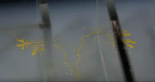 Une équipe de chercheurs japonais et hongrois considère que Physarum polycephalum est capable de se déplacer dans un labyrinthe d’agar-agar en identifiant le plus court chemin possible quand deux morceaux de nourriture sont placés à chaque entrée[20]. En réalité, Physarum polycephalum parcourt tout le labyrinthe et persiste uniquement sur le chemin le plus court.