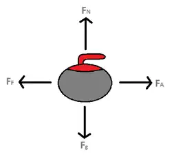 La courbe d’une pierre qui glisse sur la glace peut être compliquée à comprendre. Une pierre peut être tournée dans la direction d’une horloge ou dans la direction inverse d’une horloge cela s'appelle "le curle". Quand la pierre tourne pendant son voyage, un côté de la pierre va plus vite que l’autre, par rapport à la surface de glace. Si une pierre tourne dans la direction d’une horloge, le côté gauche va plus vite que le côté droit. Le côté gauche crée plus de friction comme il bouge plus vite et ceci réchauffe la surface de glace. Donc le côté droit accroche plus la surface de glace et permet à la pierre de courber vers la droite.