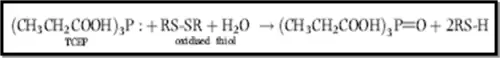 Le TCEP est le réactif réducteur utilisé, une addition au surnageant (250µL) un volume de 25µL de TCEP 20mM (préparé dans 200mM HEPES/ 5mM DTPA (pH=8.2)) peut réduire les thiols oxydés selon la réaction suivante :