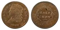 - ↑ (en-US) « Draped Bust Half Cent - PCGS CoinFacts », sur PCGS (consulté le )