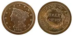 - (en) Cet article est partiellement ou en totalité issu de l’article de Wikipédia en anglais intitulé « Half cent (United States coin) » (voir la liste des auteurs).