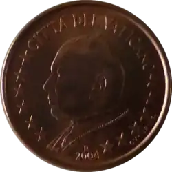 - ↑ Nouvelles faces nationales des pièces en euros destinées à la circulation : État de la Cité du Vatican. In : Journal officiel de l'Union européenne, 2005/C 308/08, 6 décembre 2005.