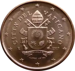 - ↑ Nouvelles faces nationales des pièces en euros destinées à la circulation : État de la Cité du Vatican. In : Journal officiel de l'Union européenne, 2017/C 23/6, 24 janvier 2017.