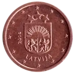 - ↑ Nouvelles faces nationales des pièces en euros destinées à la circulation : République de Lettonie. In : Journal officiel de l'Union européenne, 2013/C 309/03, 24 octobre 2013.