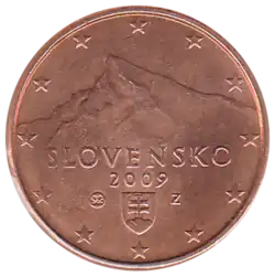 - ↑ Nouvelles faces nationales des pièces en euros destinées à la circulation : République slovaque. In : Journal officiel de l'Union européenne, 2008/C 273/06, 28 octobre 2008.