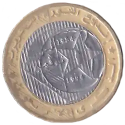 La pièce de 2004 est une série limitée de la banque d'Algérie qui a émis que trois millions de la pièce[4]. Elle est créée à l'occasion du 40e anniversaire du 1er novembre 1954.