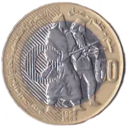 - ↑ « Règlement no 04-05 du 7 Ramadhan 1425 correspondant au portant création d’une pièce commémorative de monnaie métallique de cinquante (50) dinars algériens “50e anniversaire du 1er Novembre 1954.” », Journal officiel de la République algérienne démocratique et populaire, no 67, , p. 22 (lire en ligne).