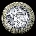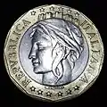 | Avers : L'inscription « repvbblica italiana » et Italia turrita (figure allégorique féminine personnifiant l'Italie) | Revers : Carte de l'Europe avec Allemagne réunifiée, valeur faciale et l'année | ||||