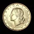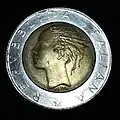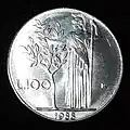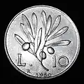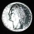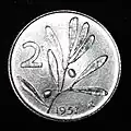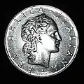 | Avers : L'inscription « repvbblica italiana » et Italia turrita (figure allégorique féminine personnifiant l'Italie) | Revers : Mouette, épi de maïs, dauphin, rameau d'olivier, valeur faciale et l'année | ||||