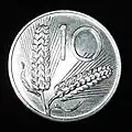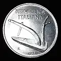 | Avers : L'inscription « repvbblica • italiana » et un paysan avec charrue | Revers : Épi de maïs, valeur et année | ||||