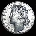 | Avers : L'inscription « repvbblica italiana » et Italia turrita (figure allégorique féminine personnifiant l'Italie) | Revers : Couronne arborée, valeur faciale et l'année | ||||