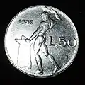 | Avers : L'inscription « repvbblica italiana » et une tête de couronnée | Revers : Vulcain travaillant à l'enclume, valeur faciale et l'année | ||||