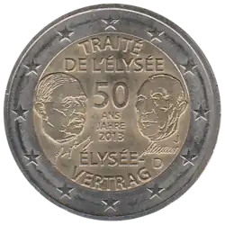 - ↑ (en) « 2013 - 50th anniversary of the signing of the Élysée Treaty », sur le site de la Banque fédérale d'Allemagne (consulté le ).
