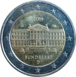- ↑ (de) « 2-Euro-Gedenkmünze "Bundesrat" », sur Bundesverwaltungsamt, (consulté le ).