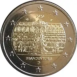 - 1 2 3 (de) « 2-Euro-Gedenkmünzen „Brandenburg“, „Sachsen-Anhalt“ und „Thüringen“ aus der Serie „Bundesländer“ », sur le site officiel du Ministère fédéral des Finances, (consulté le ).