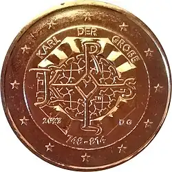 - ↑ 2-Euro-Gedenkmünze „1275. Geburtstag Karl der Große“