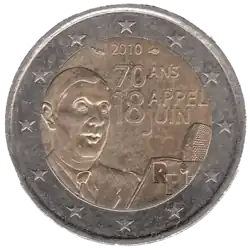 - ↑ JO C 137/25 du 27/05/2010 : France 2010 (70 ans de l'appel du 18 Juin).