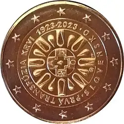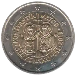 - ↑ JO C 200/9 du 12/07/2013 : Slovaquie 2013 (1150e anniversaire de l'arrivée des Apôtres Cyrille et Méthode).