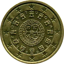 Comme toutes les pièces en euro destinées à la circulation, les pièces portugaises répondent aux spécifications techniques communes et présentent un revers commun utilisé par tous pays de la zone euro. Celui-ci indique la valeur de la pièce. Le Portugal utilise la deuxième version du revers depuis 2008[1].