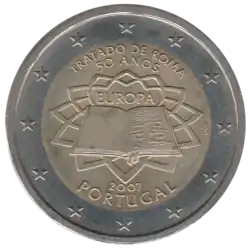 Tous les pays de la zone euro, dont le Portugal, ont émis le 25 mars 2007 une pièce commémorative de 2 € pour célébrer le 50eanniversaire du traité de Rome.