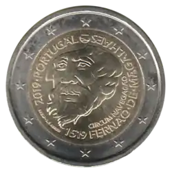 ↑ JO C 356/04 du 21/10/2019: Portugal 2019 (500eanniversaire de la première circumnavigation de la Terre, organisée et menée par l’explorateur et navigateur portugais Fernão De Magalhães (Fernand de Magellan)).