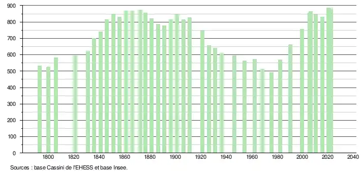 - ↑ Fiches Insee - Populations de référence de la commune pour les années 2006, 2007, 2008, 2009, 2010, 2011, 2012, 2013, 2014, 2015, 2016, 2017, 2018, 2019, 2020, 2021 et 2022.