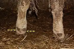 Dans le cas d'une usure irrégulière de la corne, cette dernière peut être plus fragile et irritable avec l'accumulation de terre, de fumier et de cailloux.