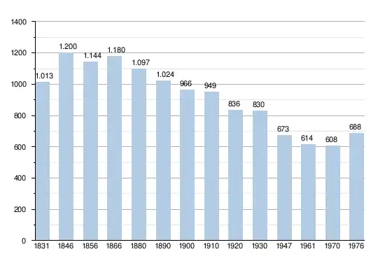 - Sources:INS, Rem:1831 jusqu'en 1970=recensements, 1976= nombre d'habitants au 31 décembre