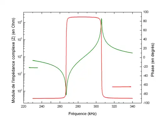 54. Travailler avec les maximum et minimum de l'impédance n'est possible que si les pertes sont négligeables. Dans le cas contraire, il faut définir plus précisément les fréquences caractéristiques du système.