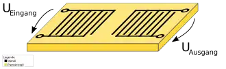 L'effet piézoélectrique est notamment exploité dans les filtres à onde de volume sur couche mince (en) (filtres FBAR)[24]. De plus, l'effet piézoélectrique joue un rôle important dans la compréhension des diverses propriétés de ces matériaux, particulièrement dans les nanostructures[25].