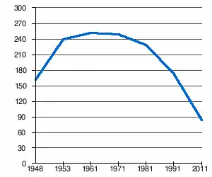- 1 2 (sq) « Évolution de la population 1948-2011 », sur pop-stat.mashke.org (consulté le ).
